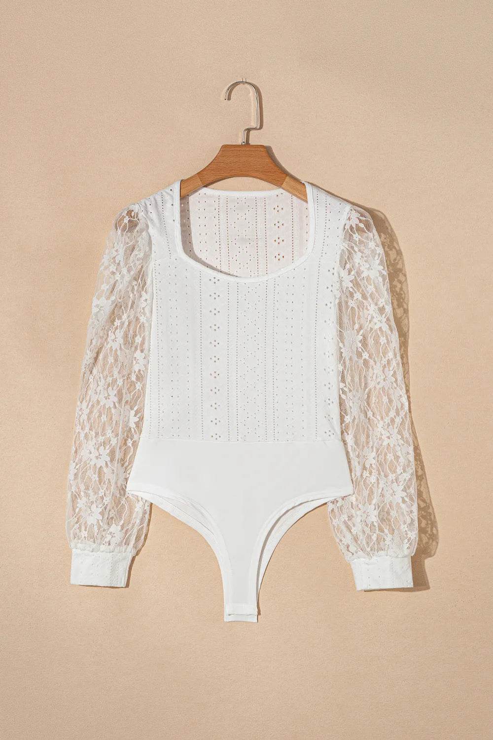 Eyelet Lace Long Sleeve Bodysuit - Byyde