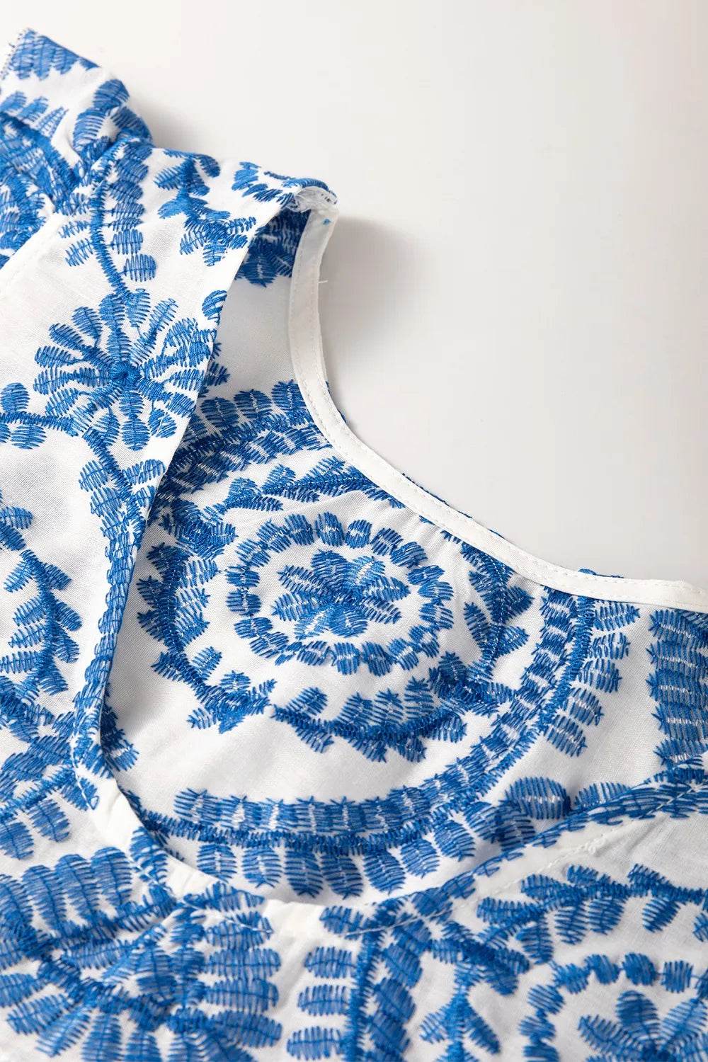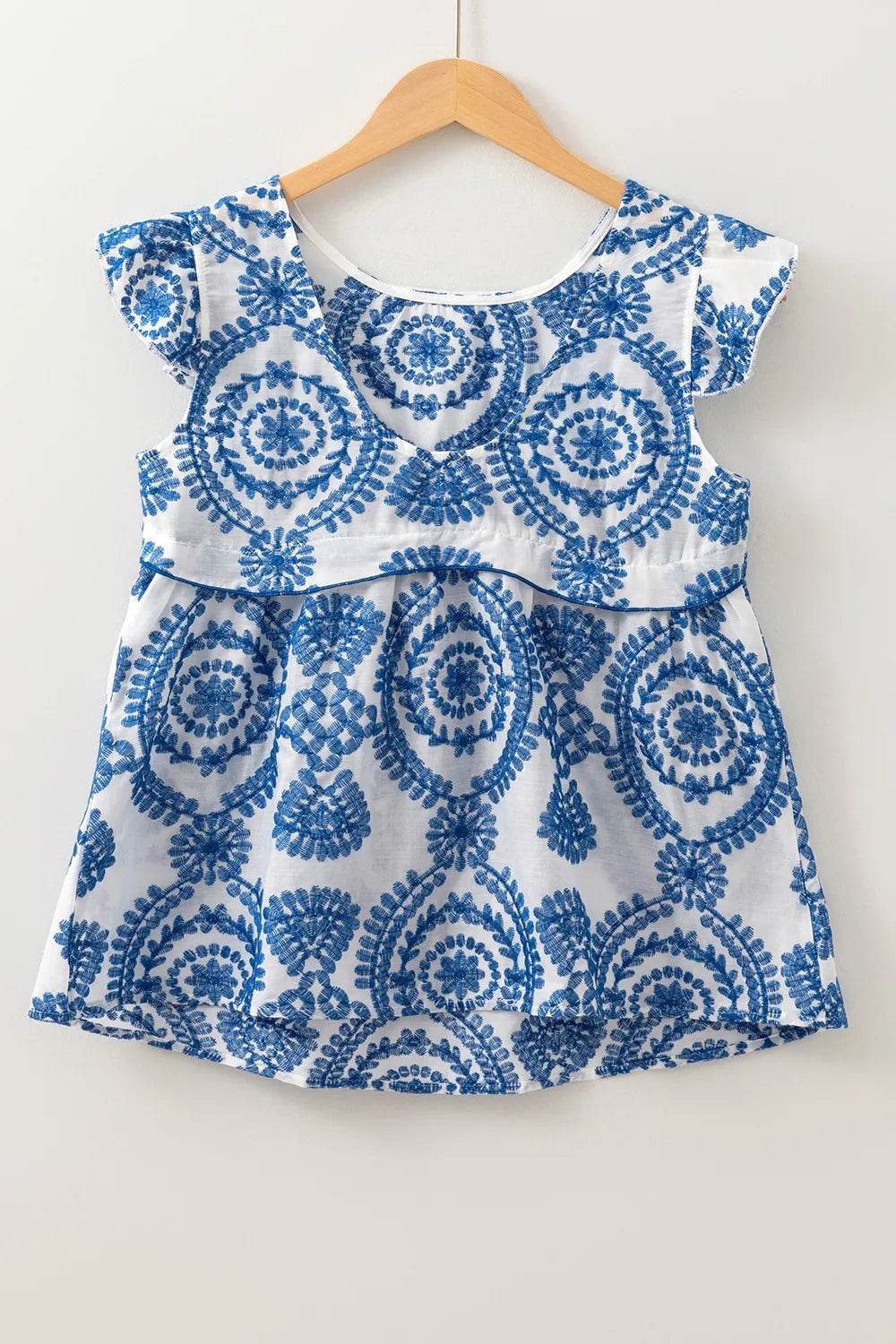 The Boho Print Ruffled Cap Sleeve Crew Neck Blouse is expertly crafted to blend relaxed elegance with intricate detail. Featuring a classic crew neckline and delicate ruffled cap sleeves, it offers a feminine silhouette enhanced by a distinctive boho-inspired print. This blouse provides versatile styling options, making it a refined addition to both casual and elevated wardrobes.
