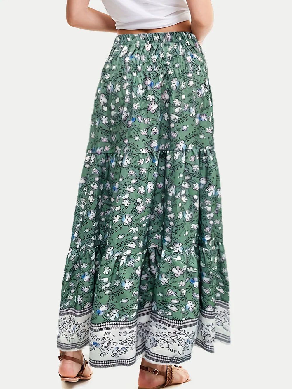 Full Size Tiered Printed Elastic Waist Skirt