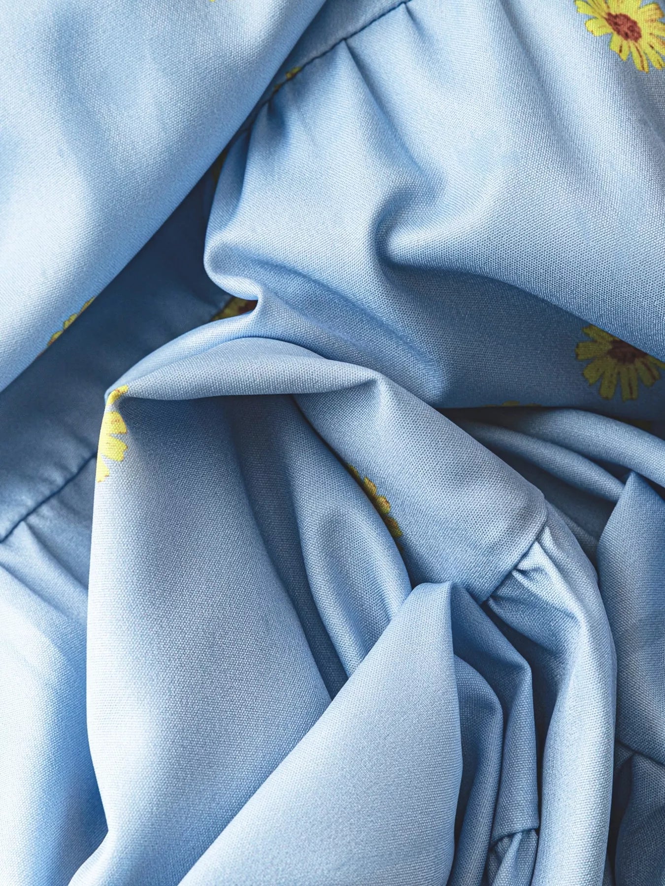 Daisy Print Puff Sleeve Tiered Maxi Dress