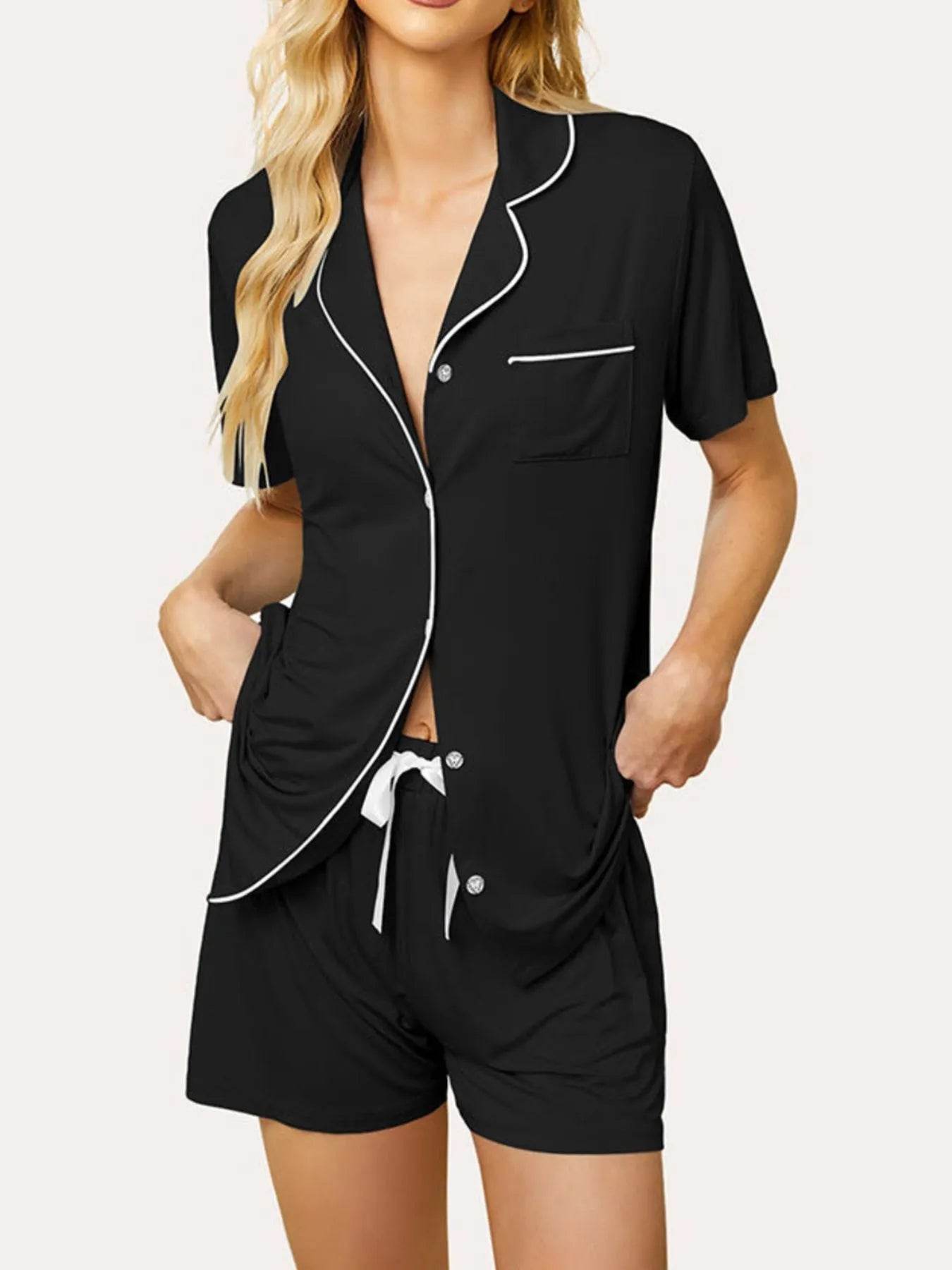 The Button Up Short Sleeve Top and Shorts Lounge Set is expertly crafted to balance relaxed comfort with classic style. Featuring a button-up short sleeve top paired with coordinating shorts, this set offers a polished yet easygoing silhouette. Designed for versatile wear, it provides breathable softness and effortless sophistication for lounging or casual occasions.