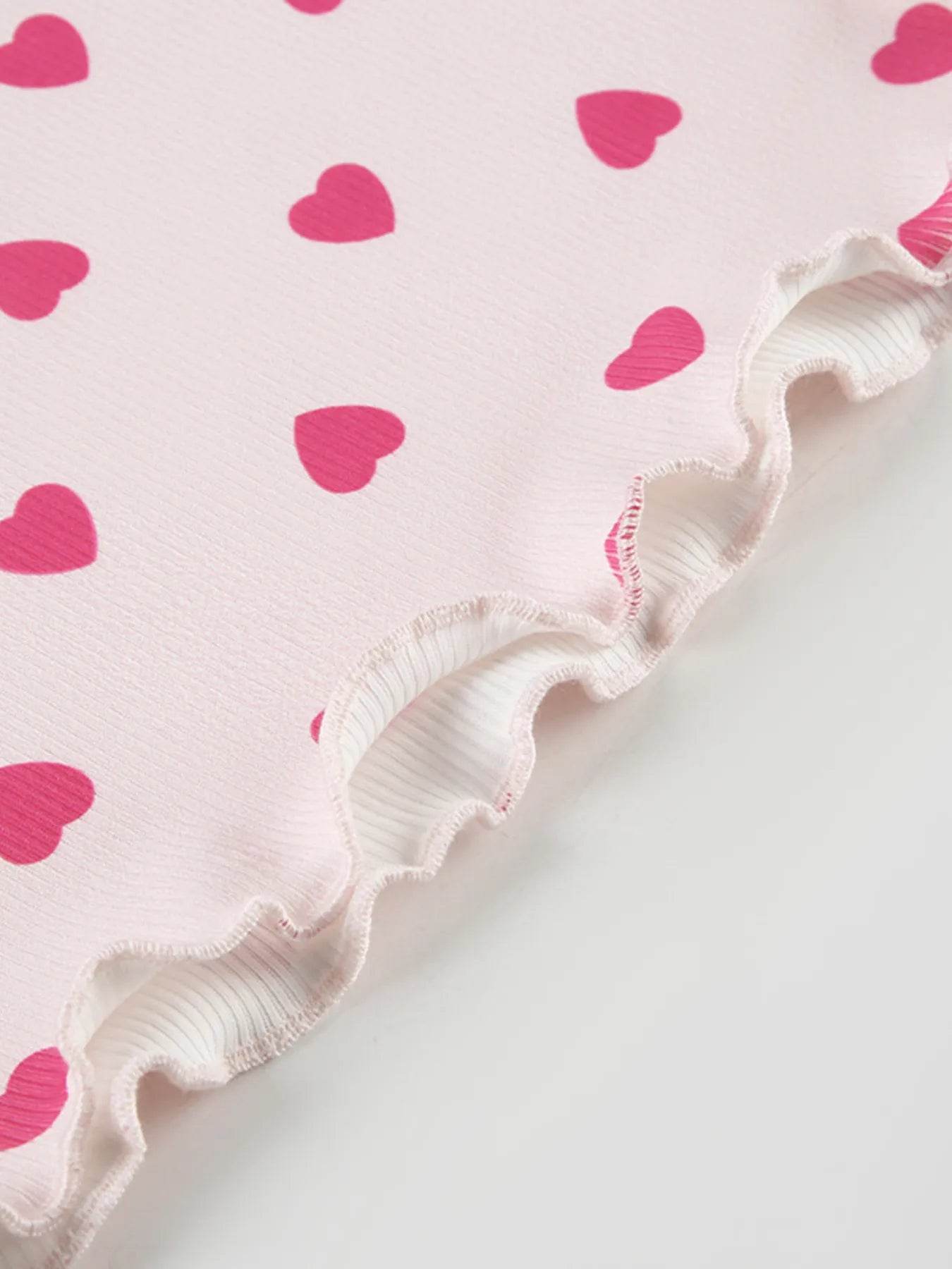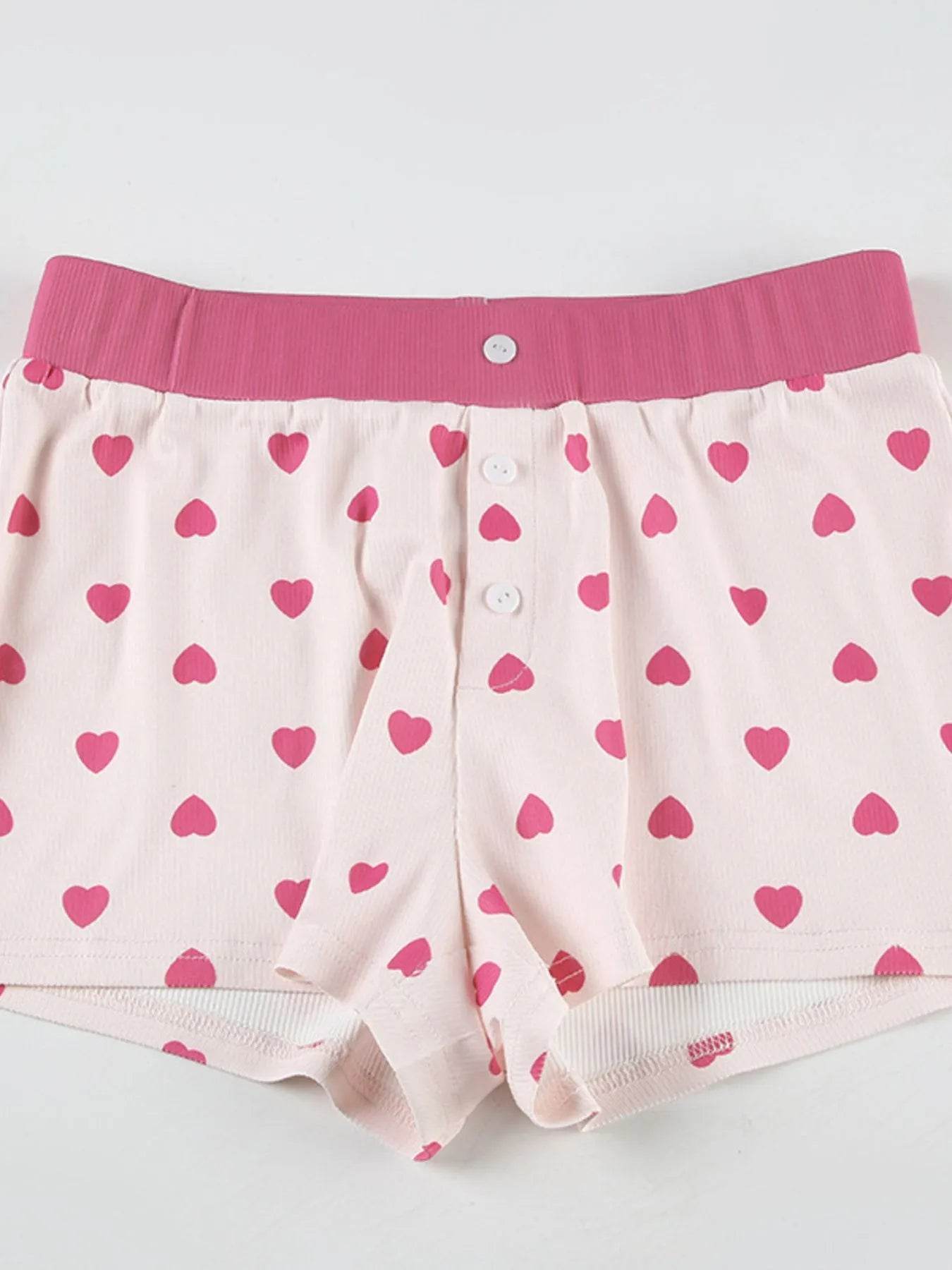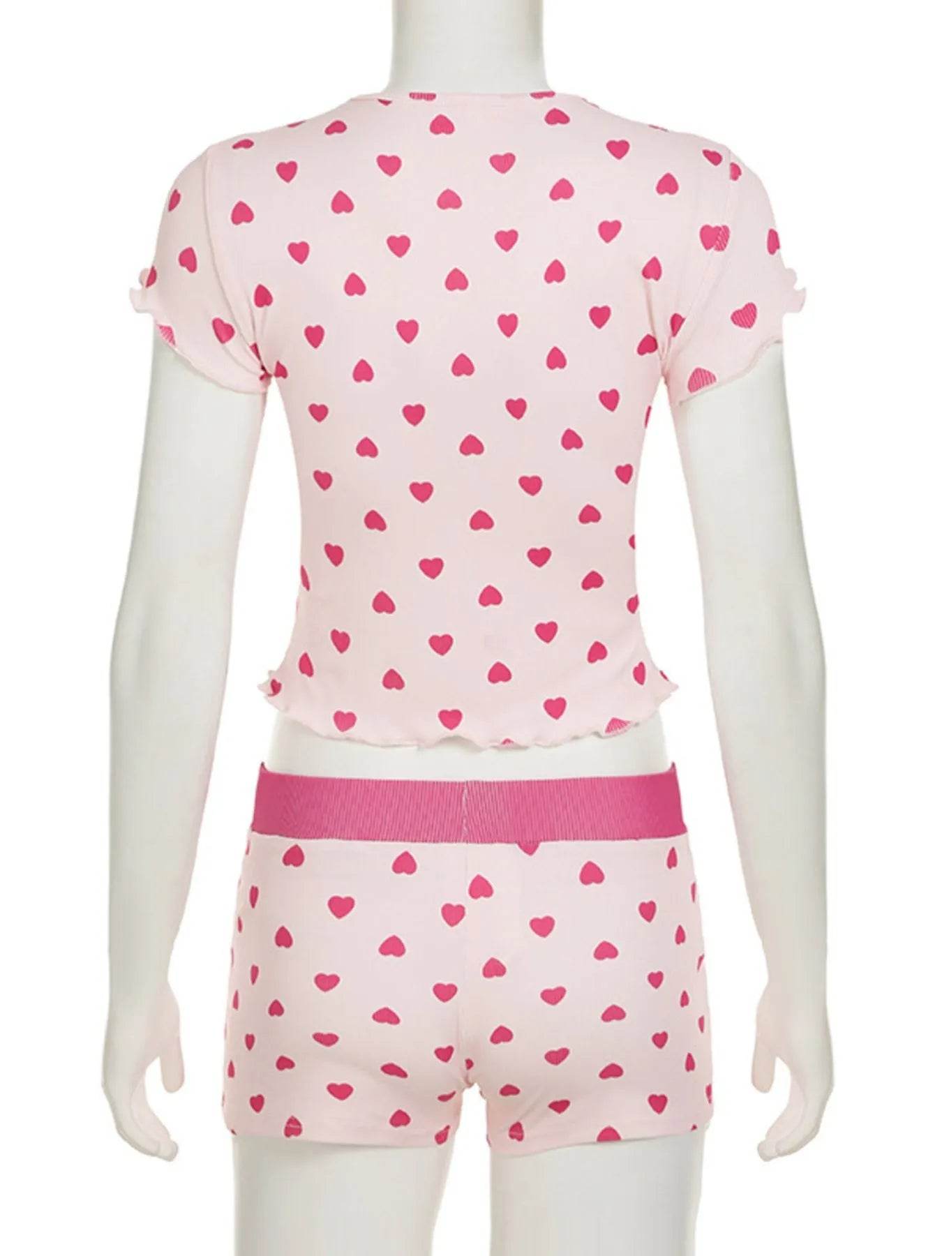 The Heart Print Top and Shorts Loungewear Set is expertly designed to offer cozy comfort with charming detail. Featuring a relaxed-fit top and coordinating shorts adorned with a playful heart print, this set provides breathable softness and ease of movement. Perfect for lounging at home or casual days, it balances stylish appeal with everyday comfort.