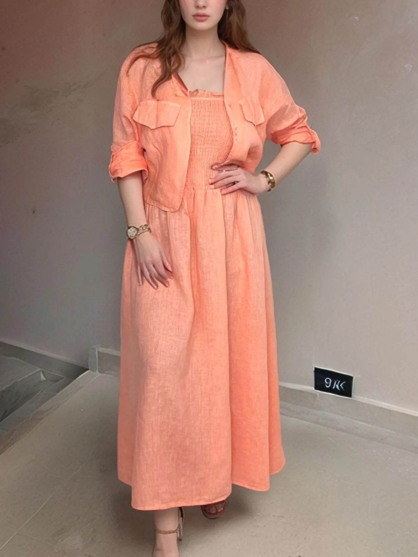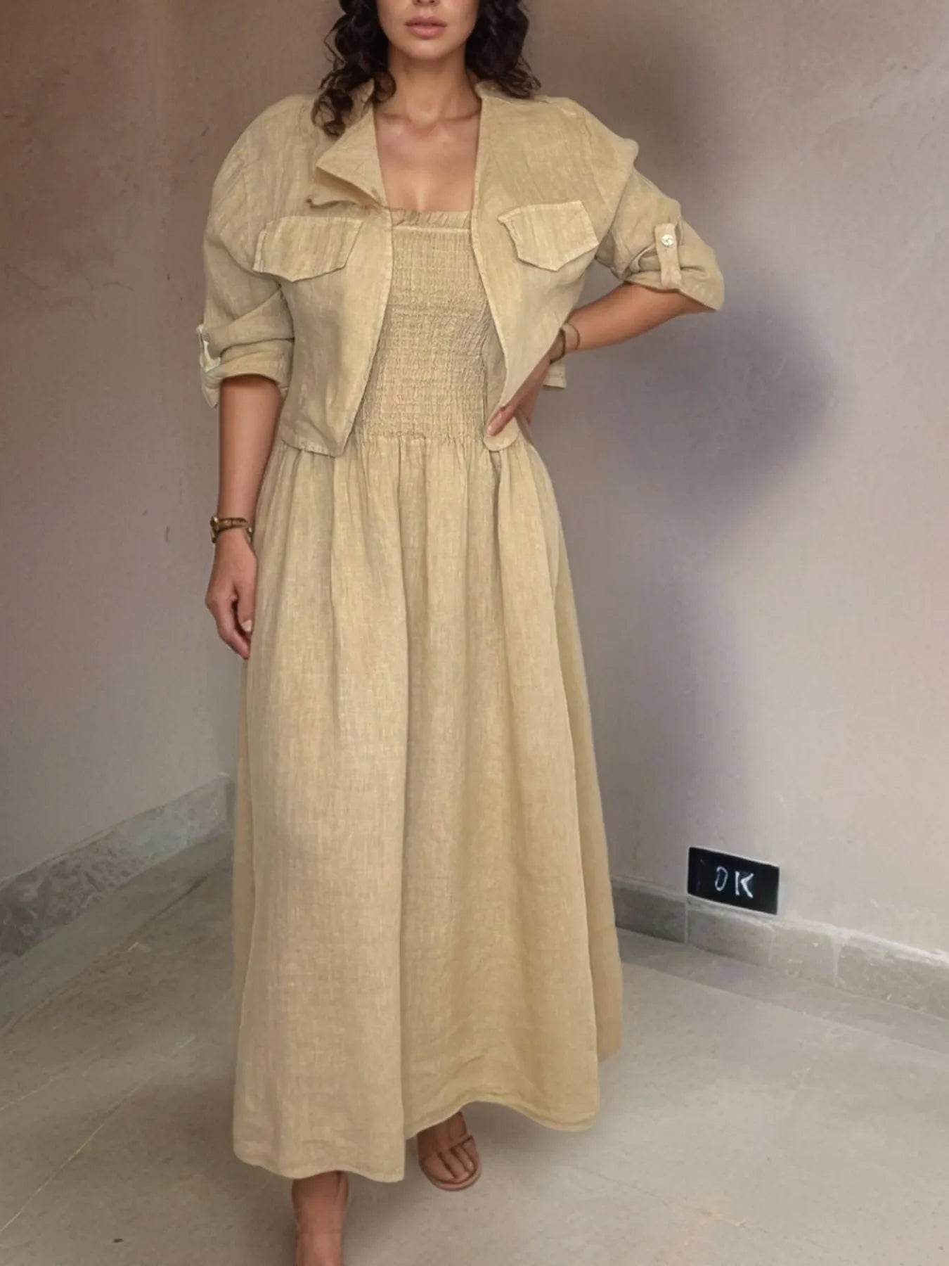 Full Size Smocked Cami Dress and Jacket Set Plus Size - Byyde
