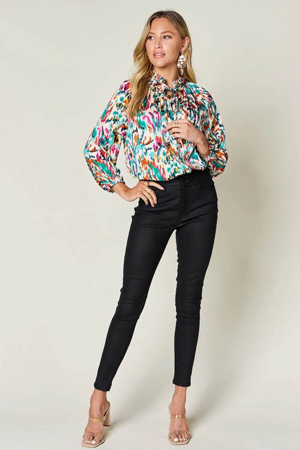 Regular size model-height 5'8", bust 34", waist 24", hip 35", size S, jeans size 1