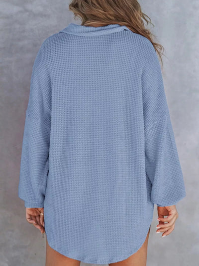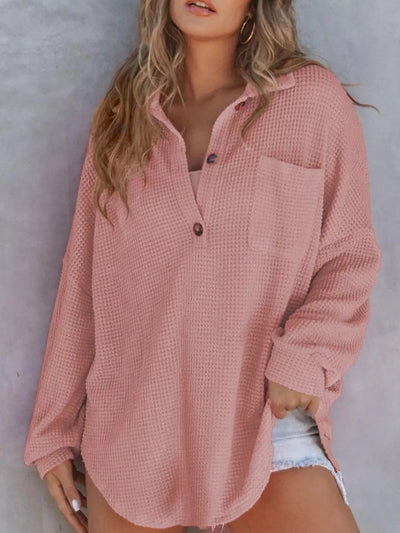 Casual Waffle Knit Button Detail Blouse