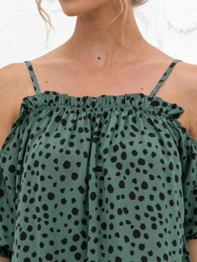 Puff Sleeve Polka Dot Ruffle Cami Top
