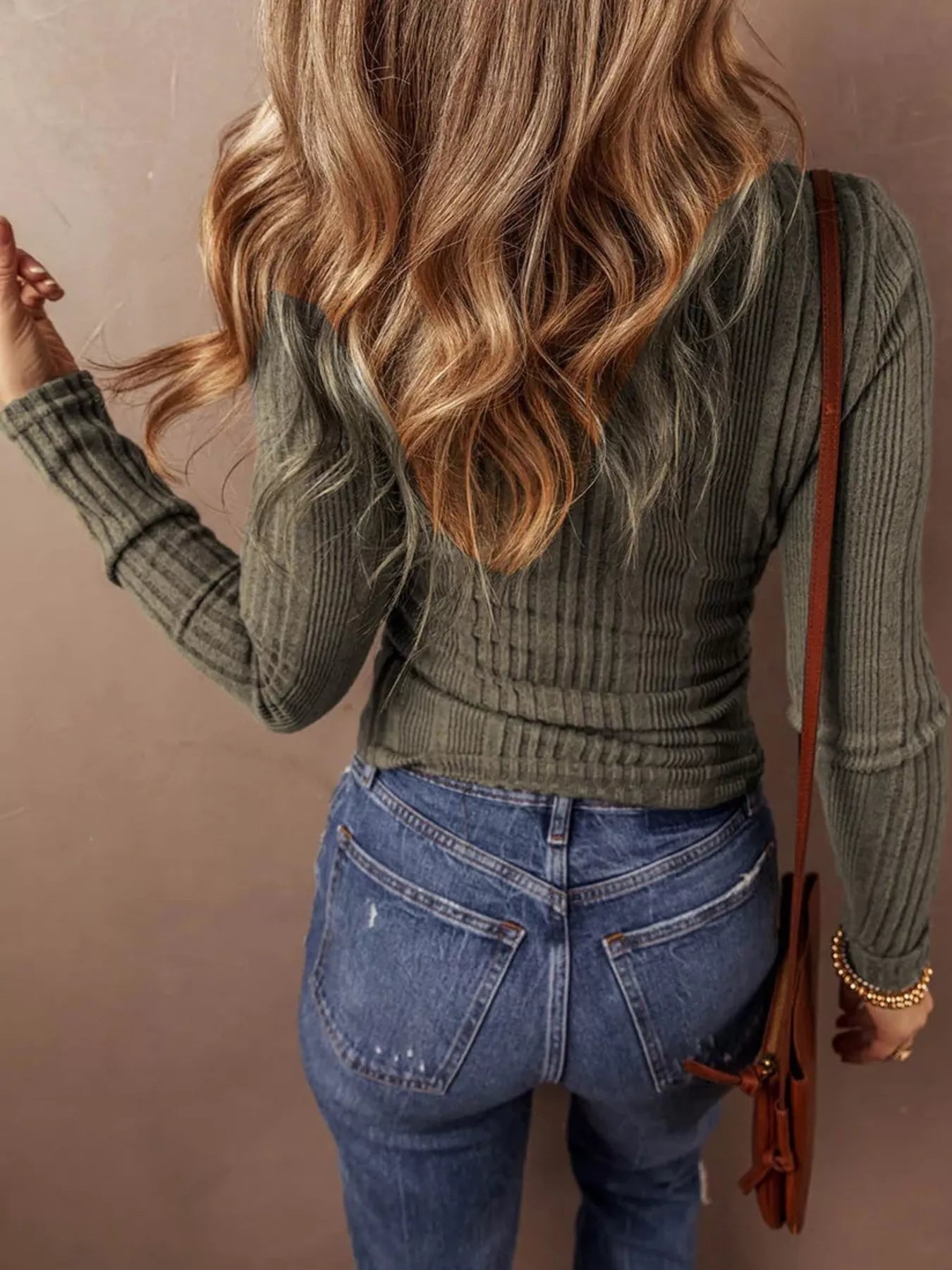 Full Size Ribbed Knit Button-Front Long Sleeve Top Plus Size