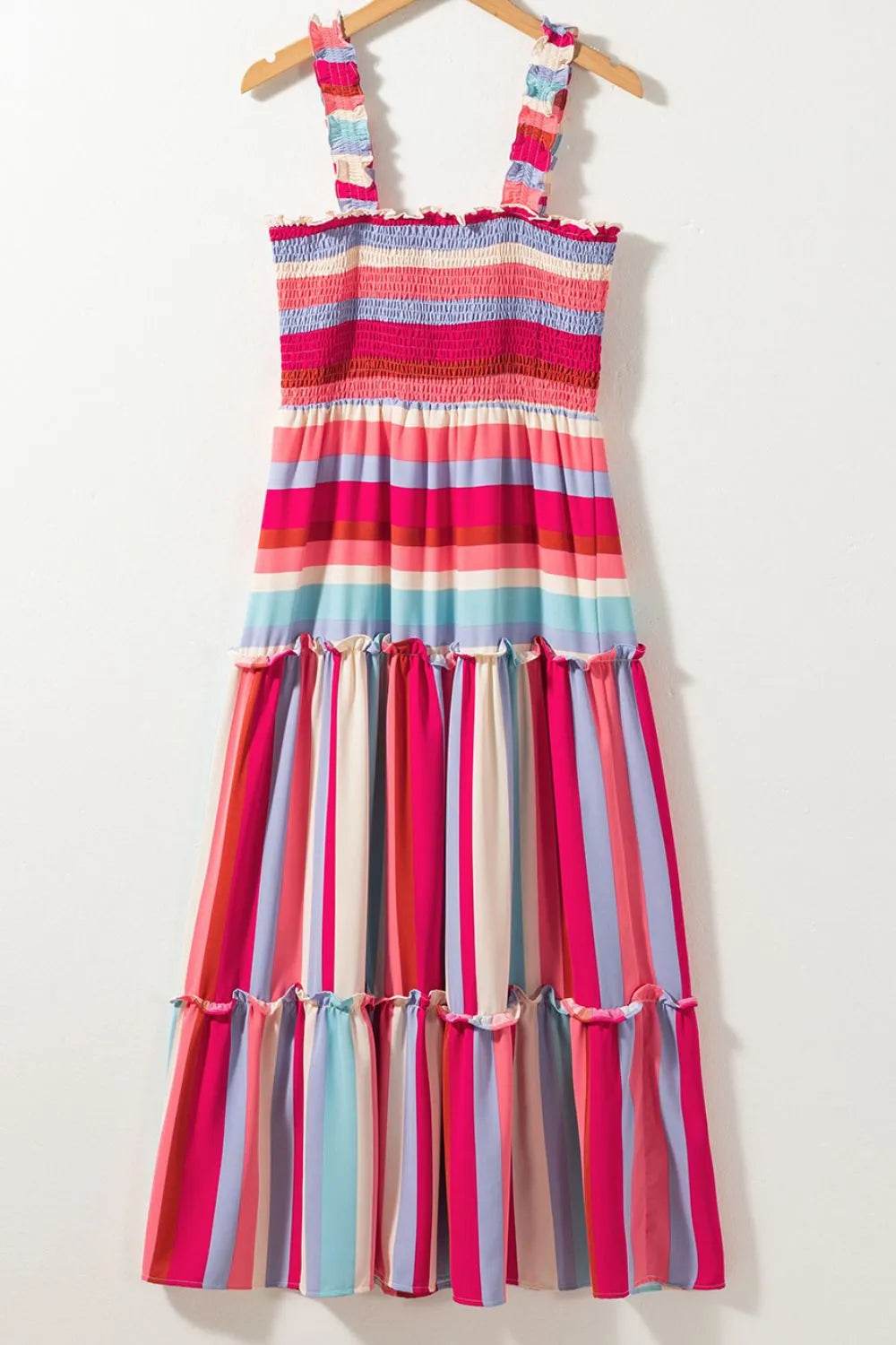 Contrast Stripe Wide Strap Smocked Tiered Dress - Byyde